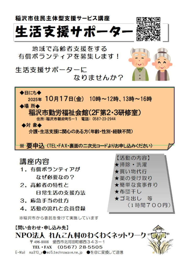 ★地域で高齢者支援をする有償ボランティアを募集します!