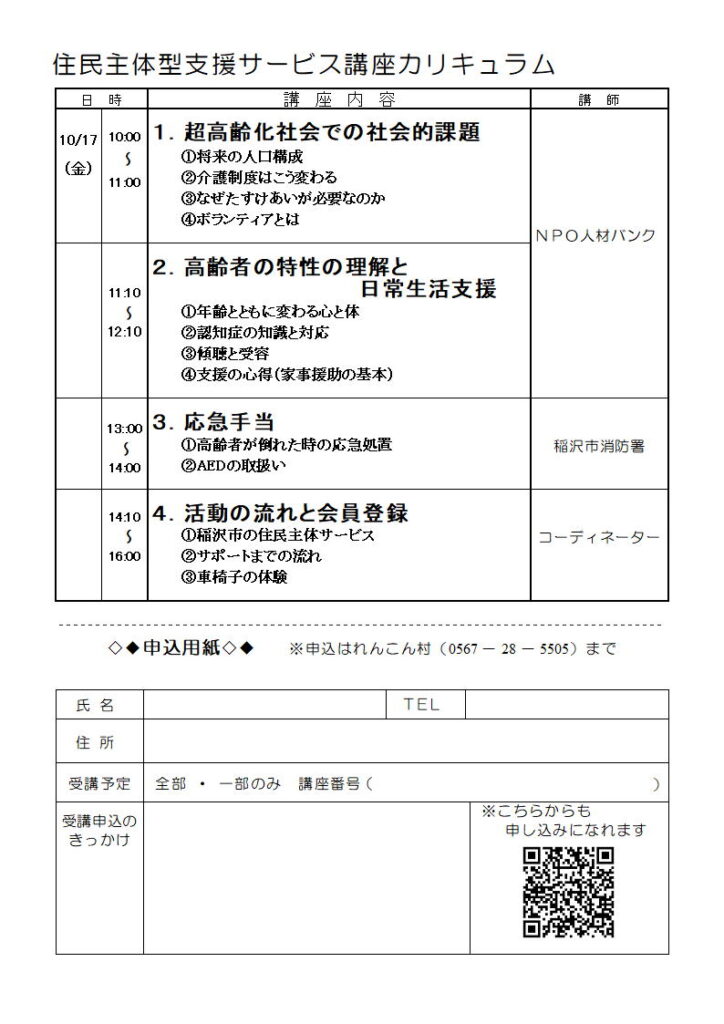 『 生活支援サポーター講座のお知らせ 』