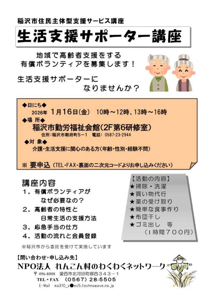 ★地域で高齢者支援をする有償ボランティアを募集します!